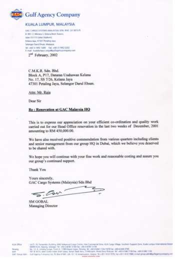 CMKR Sdn Bhd was established in Malaysia by Mr. Raja to provide quality service in the Construction and Industrial fields. Mr. Raja has been in the Construction field since 1988, serving many clients in Malaysia. During this period, he has acquired a wide range of professional skills, practical knows- how and experience to enable him to provide a wide range of services to the Construction and Industrial fields.